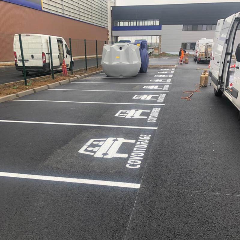 • Le marquage au sol thermocollé préformé qui se présente sous la forme d’une bande linéaire non glissante et de très haute résistance même au trafic intense, ou sous formes de pictogrammes. Cette technologie utilisée par notre entreprise de marquage au sol routier 91 permet une remise en circulation immédiate.