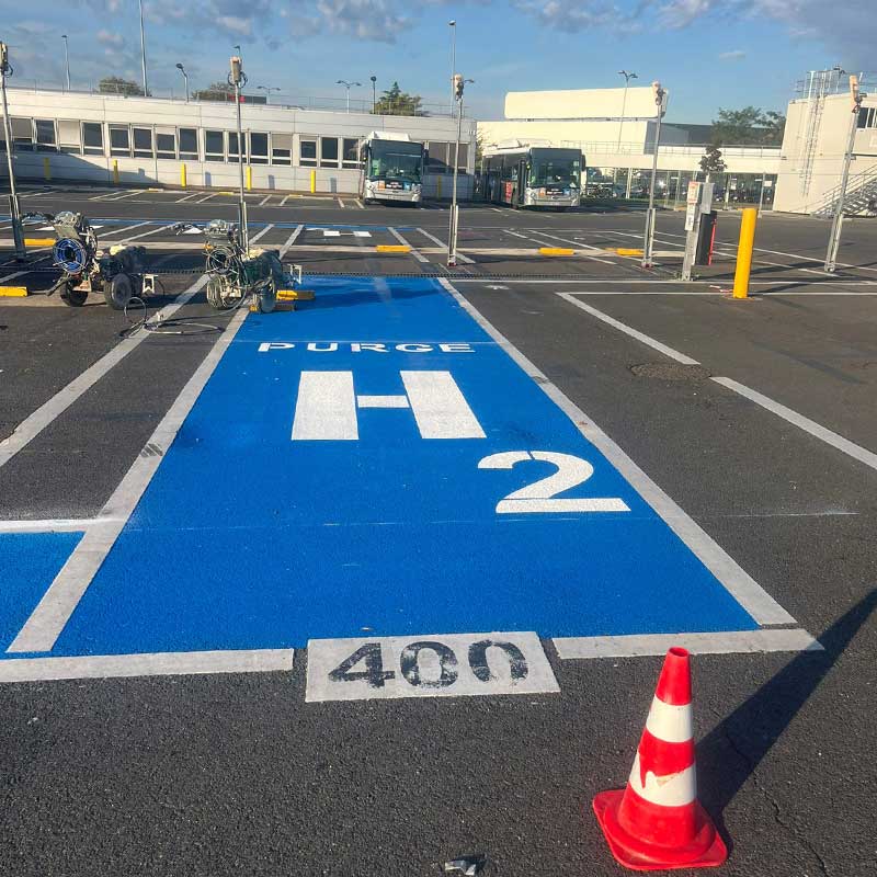 • La résine à chaud qui consiste à appliquer une résine thermoplastique marquage routier 91 préalablement chauffée qui a l’avantage de posséder un pouvoir de séchage extrêmement rapide, permettant une reprise de la circulation dans un temps optimal.